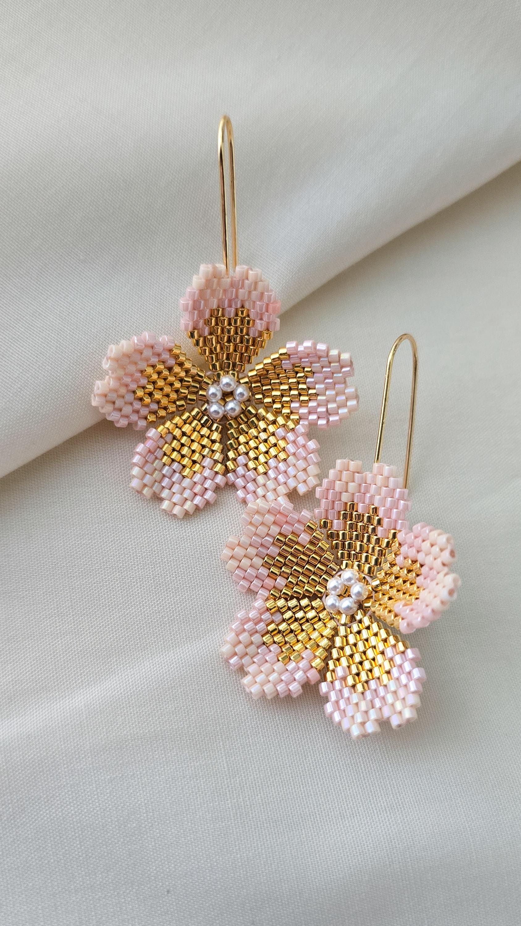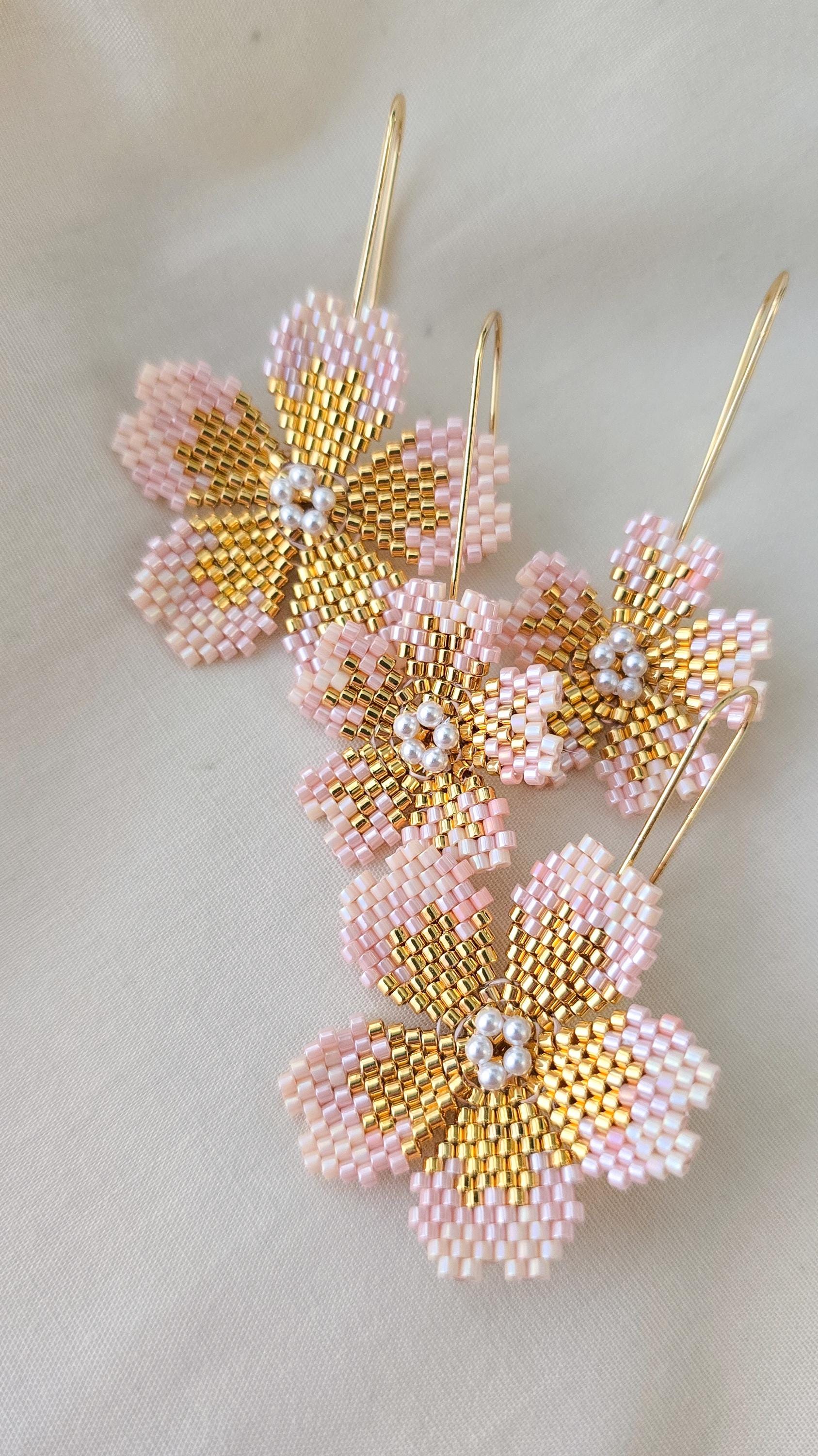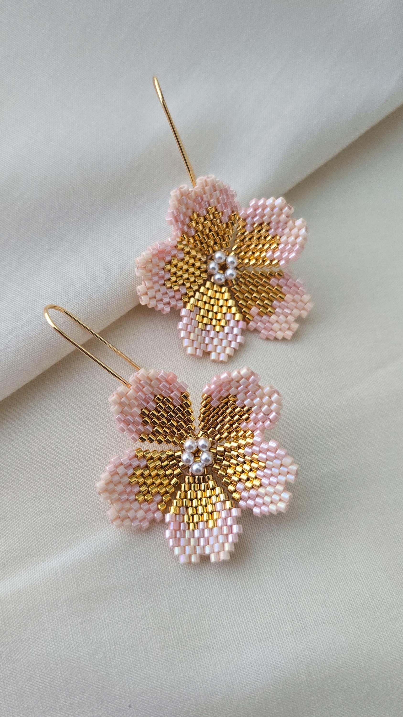 Inspired by the fleeting beauty of cherry blossoms, each petal is hand-sewn in soft blush tones, anchored by a quiet core of gold. Light rests easily here — nothing hurried, nothing forced. Just balance, patience, and grace.